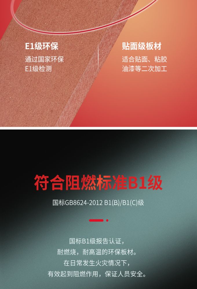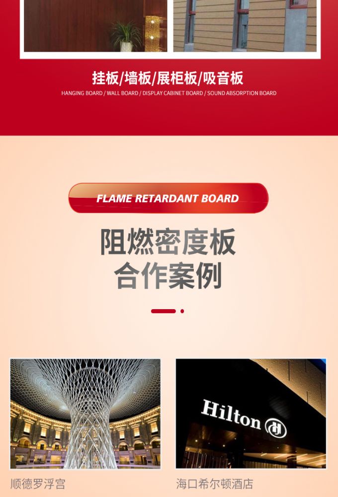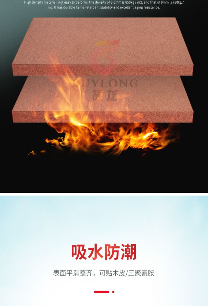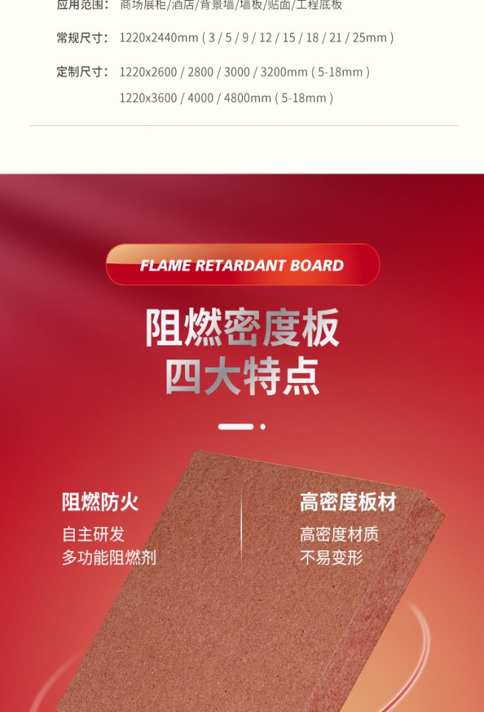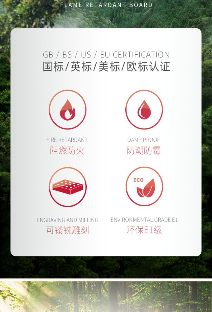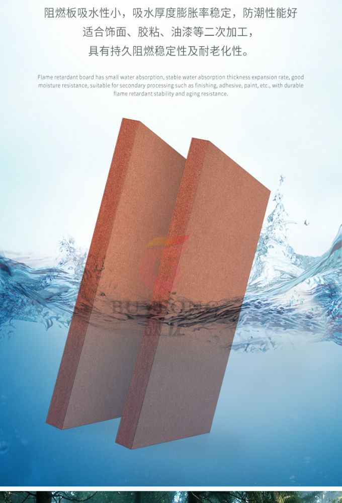 阻燃板吸濕性小,吸水厚度膨脹率穩(wěn)定,防潮性能 ,特別適合飾面、膠粘、油漆等二次加工,握螺釘力強(qiáng),無腐蝕,具有持久的阻燃穩(wěn)定性及優(yōu)良的耐老化性??勺髻N木皮,可鏤,可鉆,可刨坑等制作。